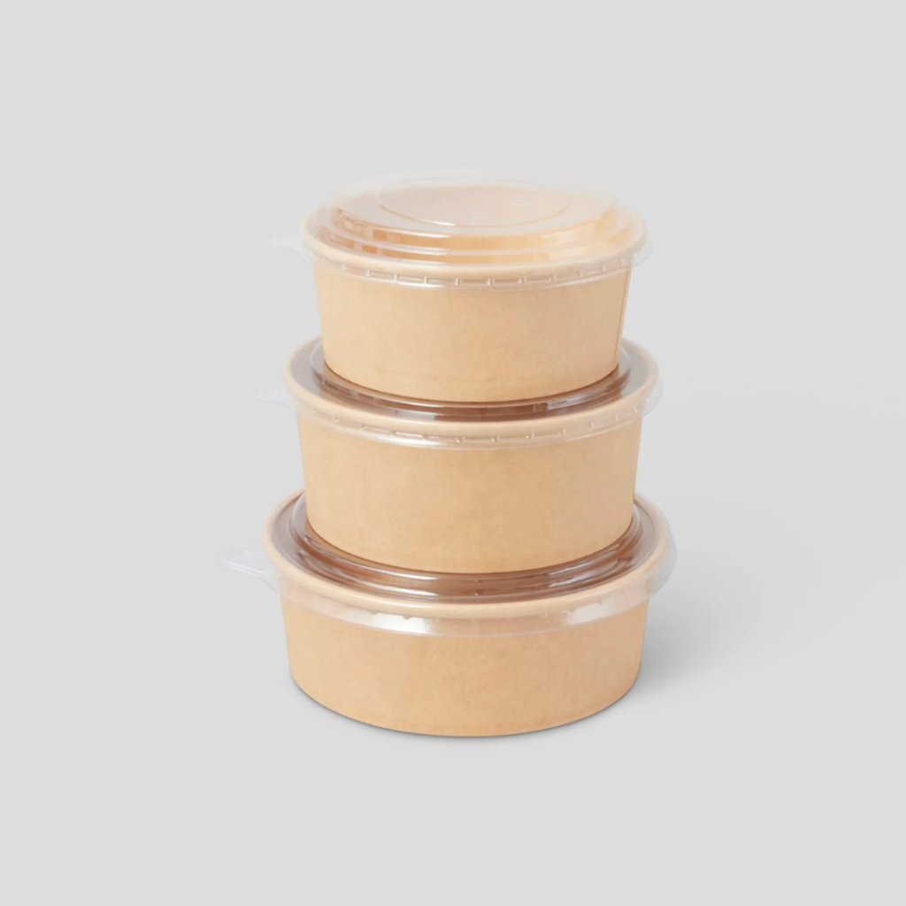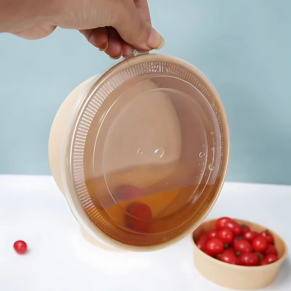 Multiple Sizes & Lid Options – Customize your Kraft Salad Bowls with the perfect size for your serving portions and choose between clear PET lids or Kraft lids for a seamless and eco-friendly food packaging experience.