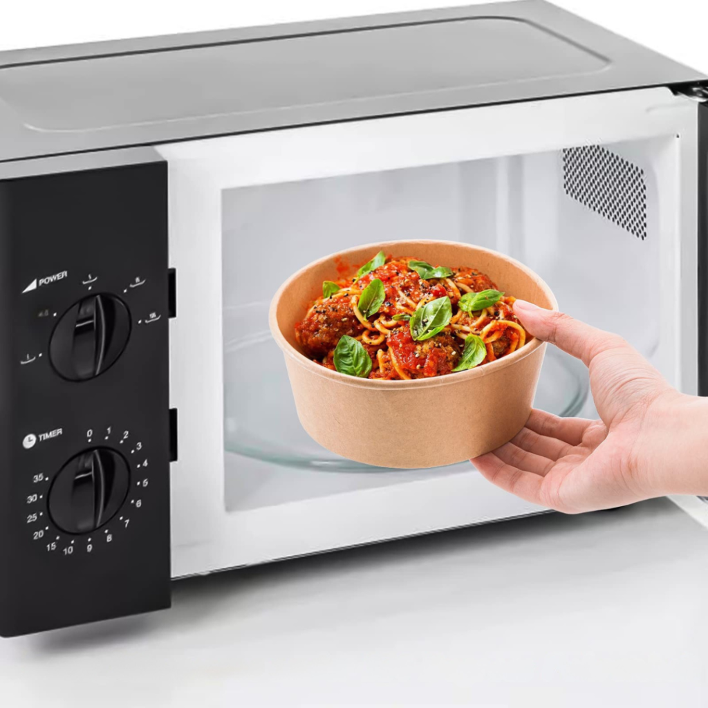 Our Kraft Salad Bowls can withstand both hot and cold temperatures, making them perfect for reheating meals or storing leftovers. They retain food freshness without compromising their integrity, ensuring convenience for both businesses and customers.