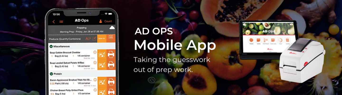 Are you a Food Service Operator in need of Food Prep Labels that are printed on-demand with accurate nutrition, ingredient, or other food safety information? We can help you provide the right label printing technology that supports all your Food Labelling needs! AD Go Ops Intelligent Food Industry Solutions enable labor efficiency, food safety, sustainability and enhance the consumer experience by harnessing the power of accurate, shared data throughout the food industry supply chain. Developed by a veteran team of restaurant owner-operators with a deep understanding of daily restaurant operations, AD Ops mobile app streamlines operations in a restaurant, resulting in labor savings and reduction in food costs.